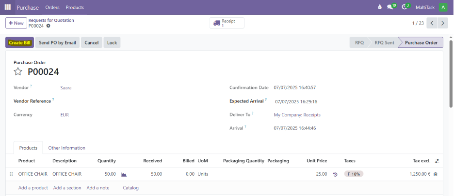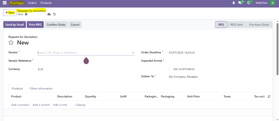 MaltiTaskās Purchase Module gives you everything you need for a fast, flexible, and error-free procurement process. From creating RFQs to automating bills and stock updates,Ā itāsĀ all integrated in one smart system.Ā