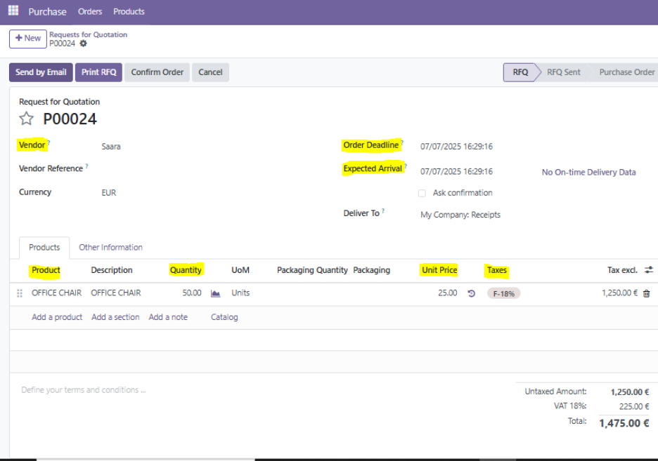 Click āConfirm Orderā to convert the quotation into a formal Purchase Order.