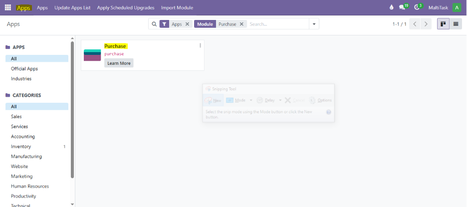 First, ensure theĀ Purchase ModuleĀ is installed and available on your MaltiTask dashboard.Ā